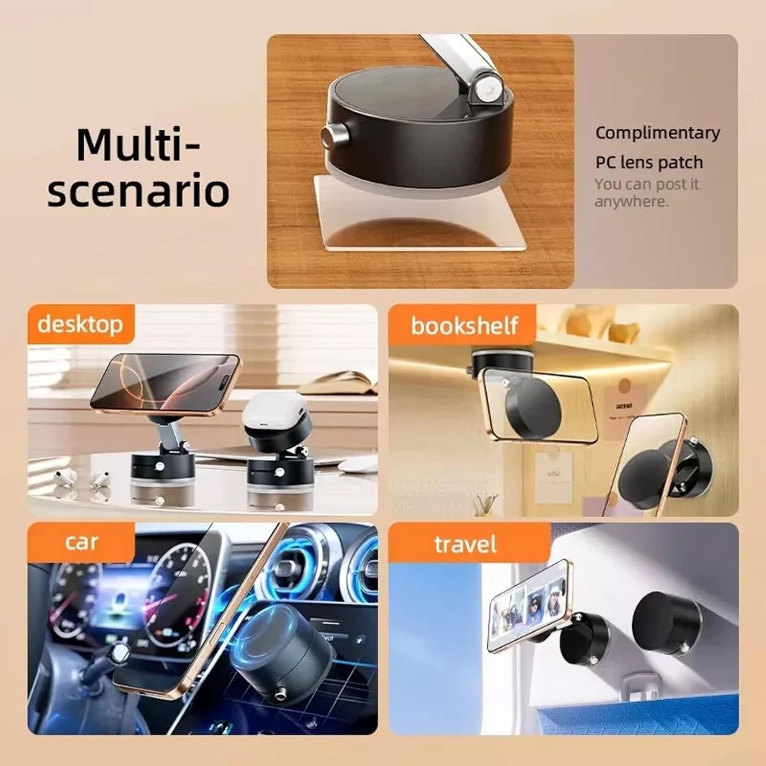 • Multi-Scenario Application - Use this vacuum suction phone holder in your car, kitchen, gym, mirror, or workspace for hands-free convenience. This magnetic phone holder for cars works perfectly as a dashboard phone mount, shower phone holder, or cooking assistant.